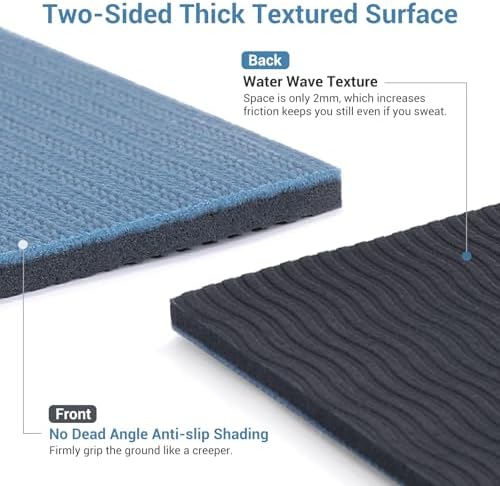 No dead angle anti-slip shading frontside, firmly grip the ground like a creeper. And water wave texture backside, space is only 2mm, which increases friction and keeps you still even if you sweat.