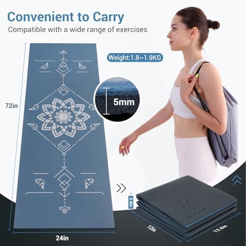 Aovalre Premium Printed Folding 72″L x 31″W x 6mm Thick Yoga Mat