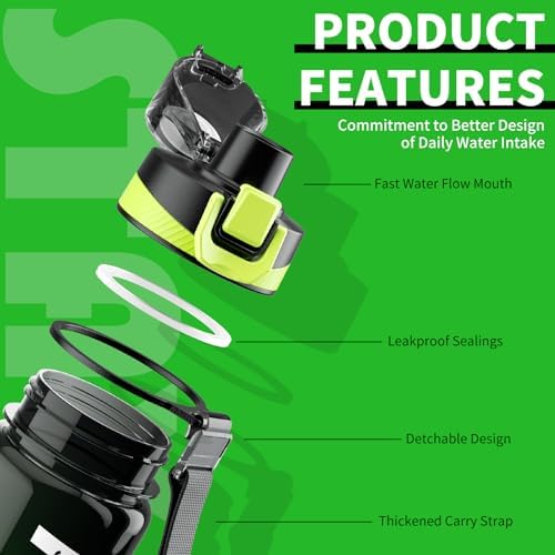 Easily Open & Leakproof: Our leak proof water bottles flip cap is designed with a safety lock to completely avoid leaks. Our water bottle gives you more freedom and comfort. The wide mouth is easy to clean and add fruit or ice cubes! The drinking spout helps you drink easily and quickly without straw